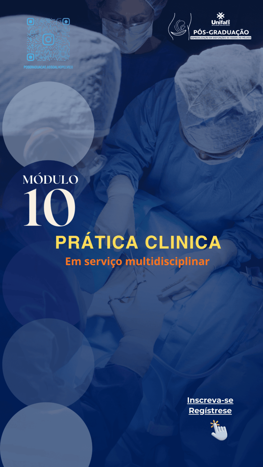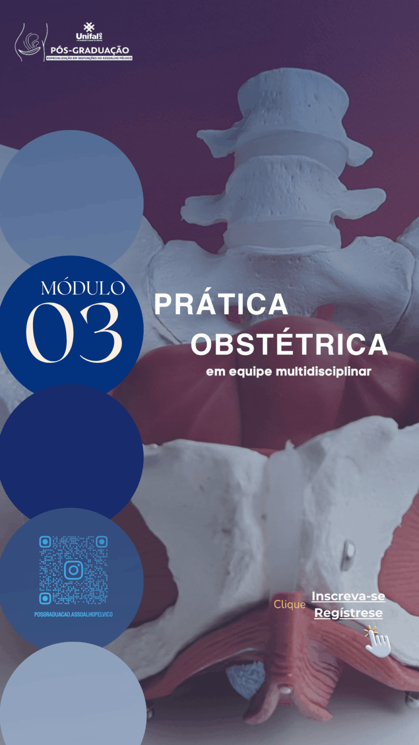 Tem o Objetivo de Promover conhecimento teórico-prático em disfunções do assoalho pélvico, fundamentado em pesquisas científicas e sua aplicabilidade nas disfunções do assoalho pélvico que envolvam disfunções urinárias, intestinais, sexuais e aquelas relacionadas às dores pélvicas, em indivíduos de qualquer idade, independentemente do sexo, ao nascimento, e orientação sexual.